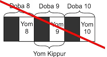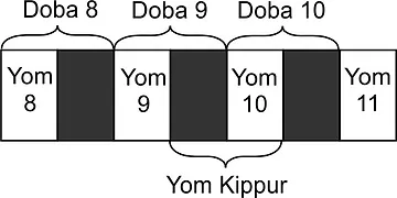 Jak widać na obrazku powyżej, Yom kippur zgodnie z opisem zahacza wieczór i noc doby dziewiątej i dzień (Yom, światłość) dnia dziesiątego.