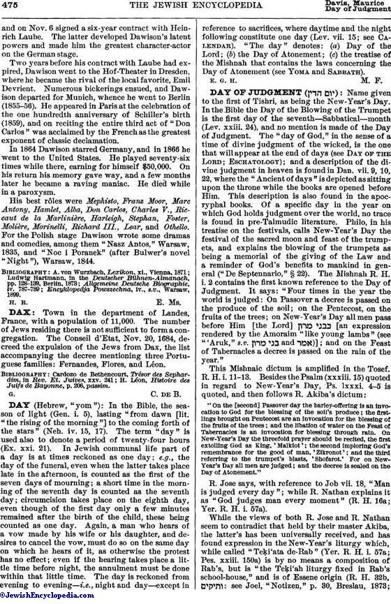 Jewish Encyclopedia na str. 591 „Aby ustalić początek i zakończenie dnia odpocznienia i świąt oraz ustalić dokładną godzinę niektórych obrzędów religijnych, konieczne staje się poznanie dokładnych czasów wschodu i zachodu słońca. Zgodnie z surową interpretacją prawa mojżeszowego, każdy dzień zaczyna się od wschodu słońca, a kończy się na zachodzie (Ibn Ezra, komentarz do przekładu XIIIIII.14).”